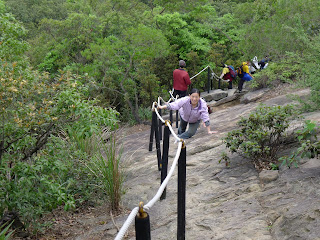 星期五夜晚的滂沱傾洩的豪大雨,澆熄了我星期六下午爬山的希望,星期六朝陽出昇、雲霧繚繞,大地充滿生氣,陽光涼風經過半日乾燥步道,我的希望即可實現。我們相約到翠湖、內溝山、老鷹尖環狀步道賞桐花。在金龍湖畔旁停車,十七位好友漫步到翠湖,蛙鳴五色鳥合奏,再揮汗登高行走在滿是桐花的步道上,微風不時在林道間穿梭,幫大夥降低爬坡走高的辛勞。在內溝山與老鷹尖高處遙望內湖汐止綿延起伏的的綠色山巒與鑲嵌其外的白色桐花叢,一起享用大家準備的水果大餐。突然間兩三隻台灣藍鵲近距離停留在我們的眼前,讓好友直說幸運。雖偶有零星甘霖滴落,在大家不斷的期盼下,都只是虛驚一場,期待這種好運氣每個星期六都有。