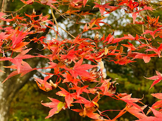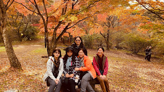 Hotel 1-2-3高崎的早餐美味,豆腐軟嫩香濃與麵包口感扎實,令人難以忘懷,第五天回來住宿再來享受。成功check out 與寄放大行李箱,帶著三日小行李到高崎車站西口2號乘車處,搭08:55高崎群馬巴士到伊香保案內所,一路上橘澄澄結實纍纍的柿子樹吸引我們目光。非常謝謝瑞宜規劃大江戶溫泉物語伊香保,享經濟實惠一泊兩食,泡万葉時代湧出的名湯溫泉,聽水沢觀世音的六道輪迴,食日本三大烏龍的大澤屋水澤烏龍,搭纜車到上ノ山公園,欣賞遙遠山脈正在變色,踏懷舊浪漫湯煙四溢365階石段街,拜掌管醫療多生貴子的伊香保神社,賞伊香保溫泉源頭的河鹿橋美楓。今日真是收穫滿滿。水澤烏龍麵細Q彈,舞茸大朵飽滿,大澤屋座無虛席,日本三大烏龍果真名不虛傳。有彩色葉子在上ノ山公園,漫步於泛紅林間,置身於秋天童話,美景引誘團員好心情,16人分不同族群拍照,胡適媽媽幫,地政五人幫,同學幫,4、5、6年級,桌球幫,阿姨親屬,夫妻好開心。展望台遙望變色山脈與脈絡城市,眼界開闊舒適。著名河鹿橋楓紅,充滿色調層次感,滿滿紅橙黃葉穿插一丁點綠意,濃黃土色溫泉緩緩流動,微風吹動楓紅,人也隨著美景陶醉。在楓紅點綴下,夥伴們人像照都是經典。越晚越美,點燈後,天空藍調加入讓每一張照片都是畫。大江戶溫泉物語伊香保提供豐富美味自助晚餐,日式時令海鮮、裝飾精緻餐點、蔬菜沙拉與美味佳餚。來大江戶酒足飯飽後一定要身著和服揮汗打桌球,佩珊、瑞宜、美麗、姨丈、明惠與我一起開心同樂,這經驗好棒,謝謝瑞宜幫我們留下美好的回憶。在伊香保白銀溫泉浴場,巧遇明惠與阿姨,一起泡湯聊天感覺親切,自從媽媽離開以後,很珍惜這份感動。伊香保四人房寬大舒適,泡湯後夜晚好入眠。